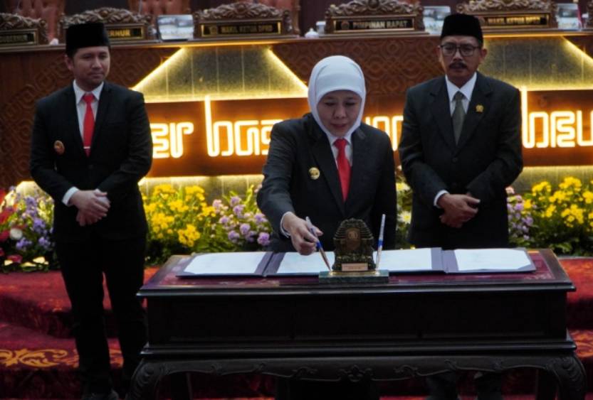 INDOUPTODATE.ID – Pemerintah Provinsi Jawa Timur dan DPRD Provinsi Jatim secara resmi menyepakati Nota Persetujuan Bersama Kebijakan Umum Anggaran Prioritas dan Plafon Anggaran Sementara (KUA-PPAS) Perubahan Anggaran Pendapatan dan Belanja Daerah (P-APBD) Tahun Anggaran 2025. Kesepakatan ini ditandai dengan penandatanganan nota oleh Gubernur Jatim Khofifah Indar Parawansa, Wakil Gubernur Emil Elestianto Dardak, dan Ketua DPRD Jatim M. Musyafak Rouf dalam Sidang Paripurna di Gedung DPRD Jatim, Senin (11/8/2025).