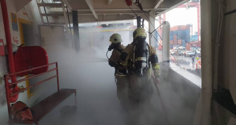 INDOUPTODATE.ID – Sebuah kapal peti kemas bernama Verizon Surabaya terbakar di kawasan